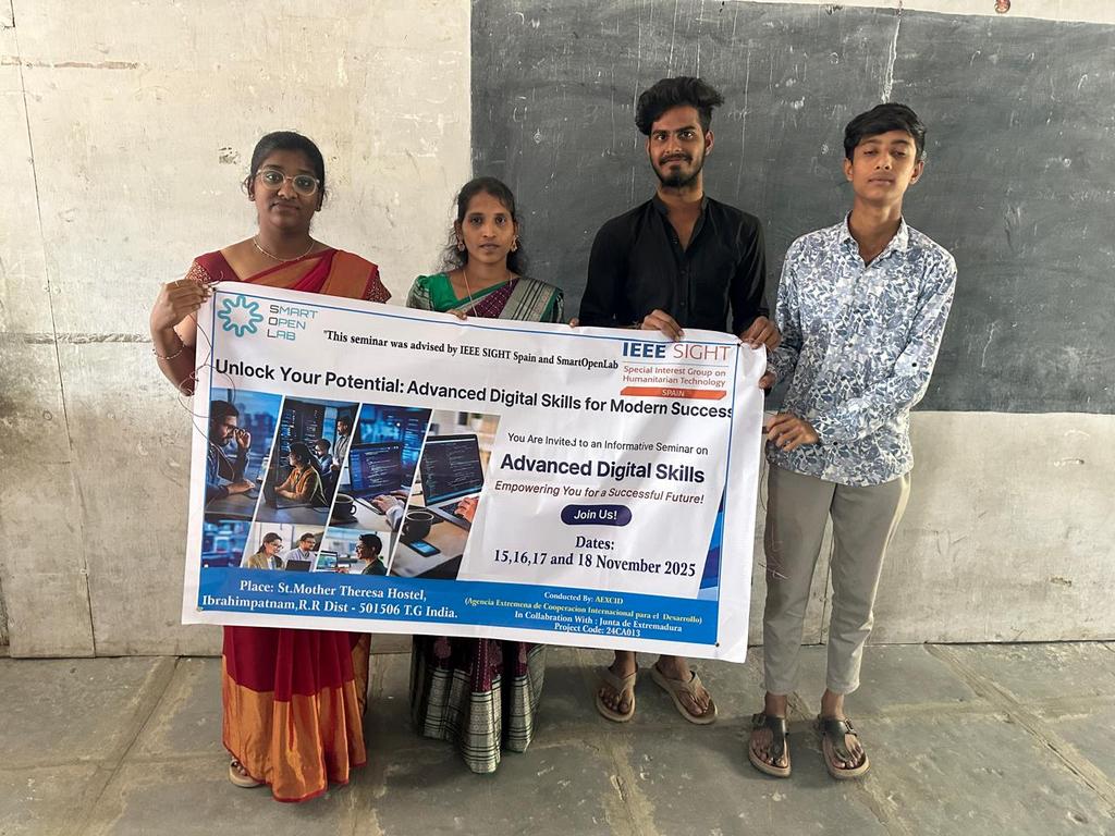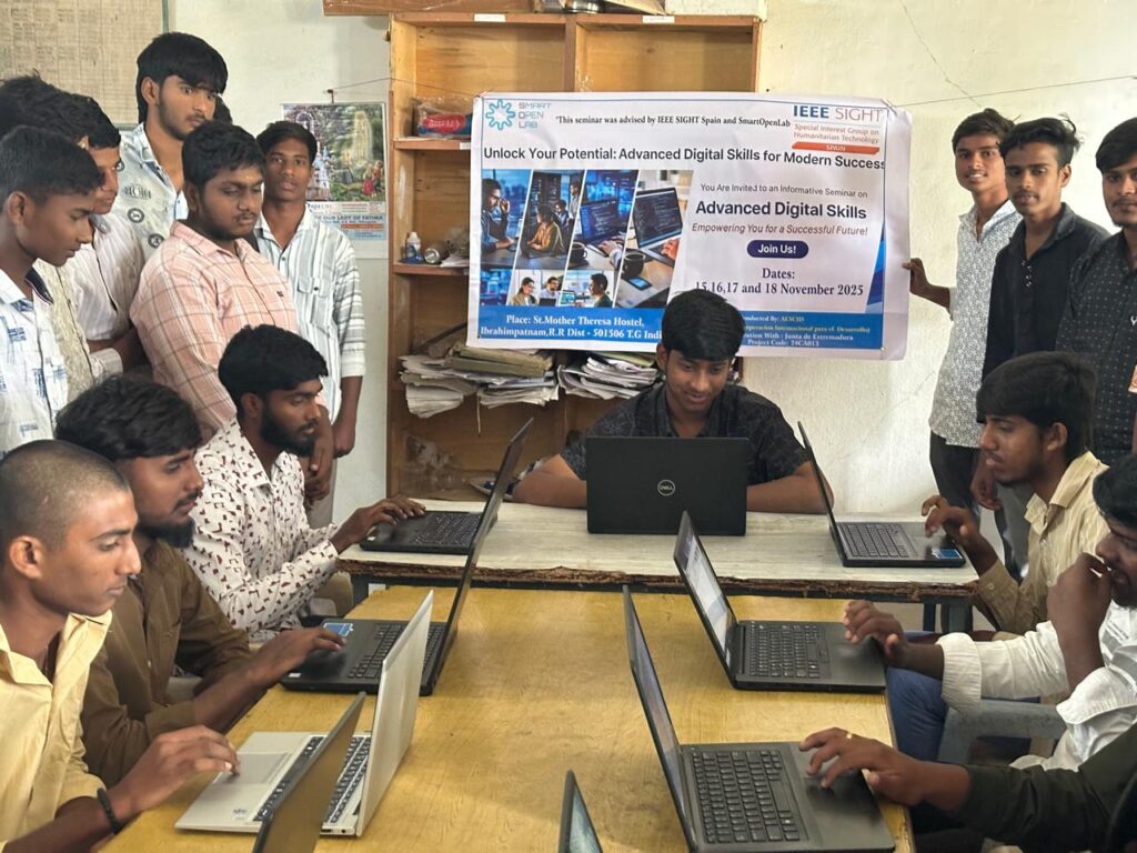 Este seminario se ha desarrollado en el marco de un proyecto de cooperación que refuerza la integración social de juventud en situación de vulnerabilidad en el estado de Telangana, India. Esta formación tiene como objetivo la adquisición de conocimientos avanzados de informática utilizando los ordenadores portátiles adquiridos a través del proyecto, permitiendo a los jóvenes aumentar sus competencias digitales y tecnológicas en beneficio de sus estudios.